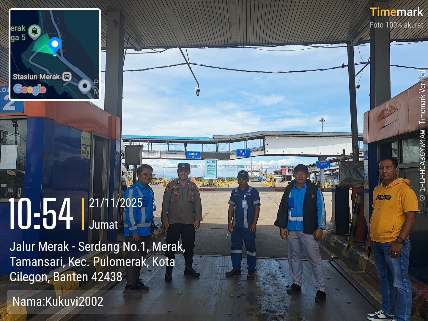 Cilegon - Personel Polsek Kskp Merak Polres Cilegon Polda Banten melaksanakan sambang dan patroli kawasan pelabuhan merak dalam rangka menjaga Harkamtibmas di Kawasan Pelabuhan Merak, Jumat (21/11/2025).