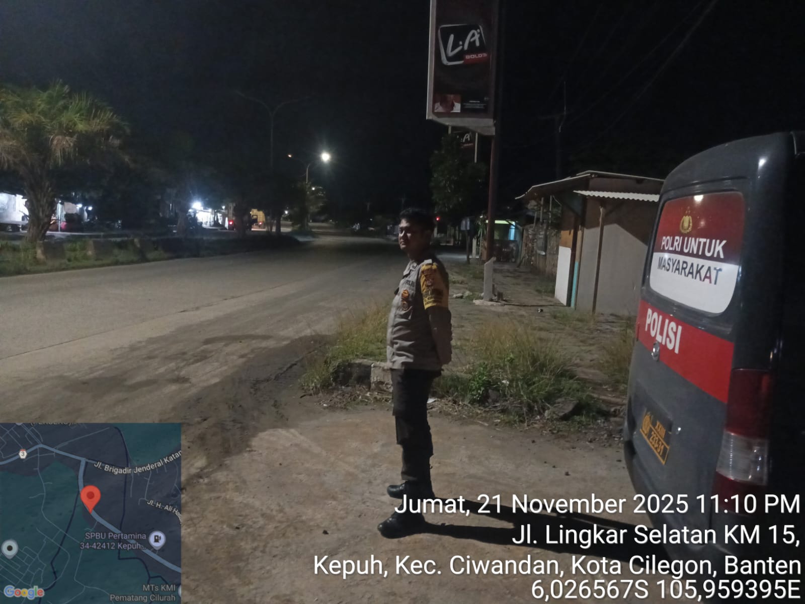 Cilegon - Personil Polsek Ciwandan Polres Cilegon Polda Banten Selalu Melaksanaan Kegiatan KRYD (Kegiatan Rutin Yang Ditingkatkan) Patroli Rutin malam hari di daerah hukum Polsek Ciwandan Guna Persempit Ruang Pelaku Tindak Kejahatan, Sabtu (22/11/2025).