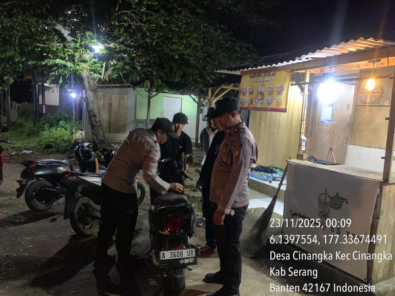 *Polres Cilegon* – Dalam Rangka Pencegahan Kejahatan Jalanan dan Memelihara situasi keamanan dan menjaga serta memberikan rasa aman dan nyaman di masyarakat,Salah satu upaya untuk mewujudkan hal tersebut sebagaimana yang dilakukan oleh Personil Polsek Cinangka Polres Cilegon Polda Banten melaksanakan giat patroli blue light malam hari hingga menjelang pagi, Minggu (23/11/2025).