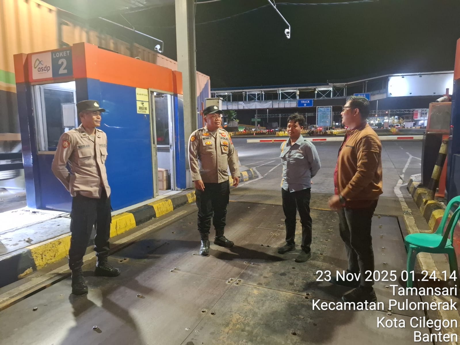 Cilegon - Personil Polsek Kskp Merak Polres Cilegon melaksanakan patroli di kawasan pelabuhan merak memberikan rasa aman dan damai, Minggu (23/11/2025)