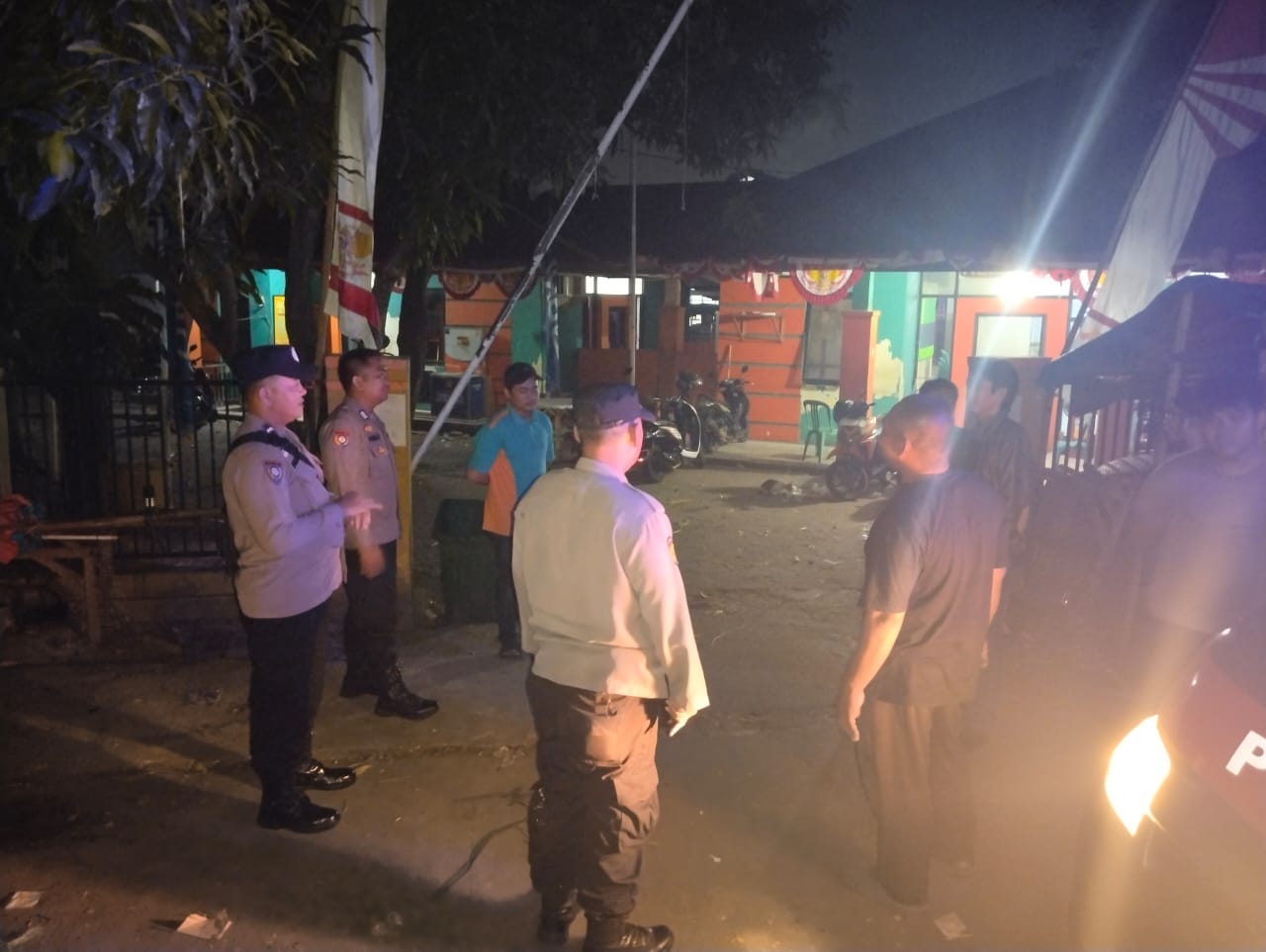Polsek Cilegon Polres Cilegon sambangi ronda malam sampaikan pesan kamtibmas.
