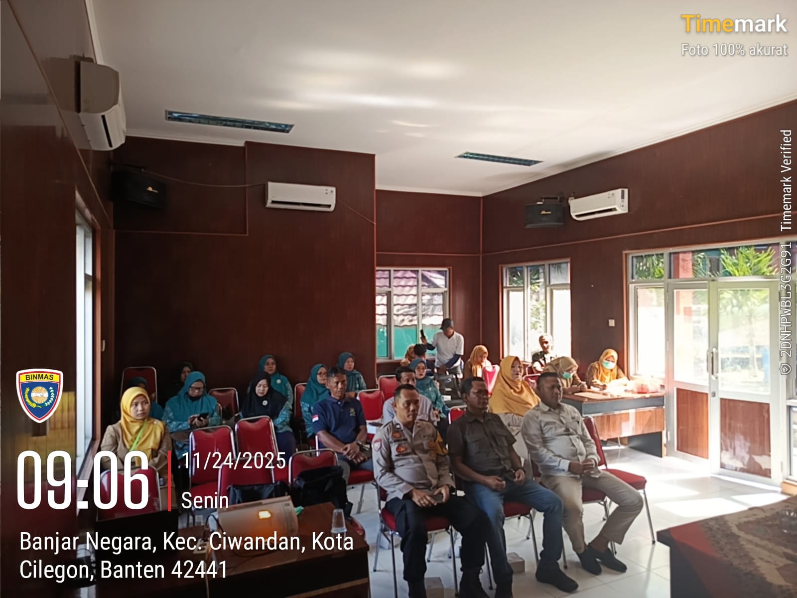 Cilegon - Bhaninkamtibmas Polsek Ciwandan Polres Cilegon Polda Banten Bersama Personil Bhabinkamtibmas Polsek Ciwandan AIPTU Jamaludin menghadiri kegiatan Lokakarya mini Lintas Sektor Bidang Kesehatan UPTD Puskesmas Ciwandan I Tahun 2025 Di Aula Kantor Kecamatan Ciwandan, Senin (24/11/2025).