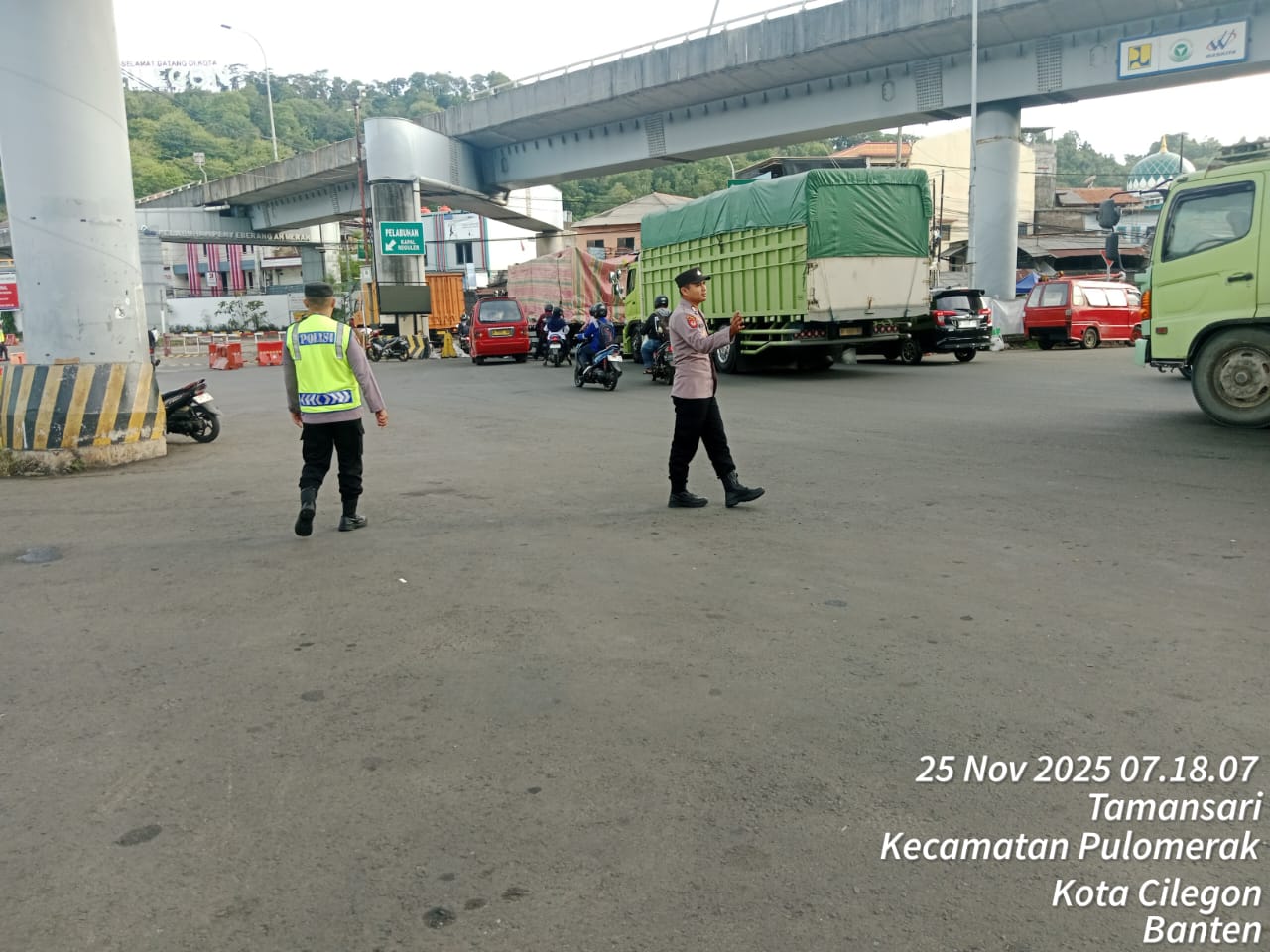 Cilegon - Dalam rangka peningkatan pelayanan prima kepada masyarakat, Kskp Merak Polres Cilegon Polda Banten melaksanakan pengaturan antrian R4 yang akan masuk ke Kapal Ferry di Pelabuhan Merak, Selasa (25/11/2025).