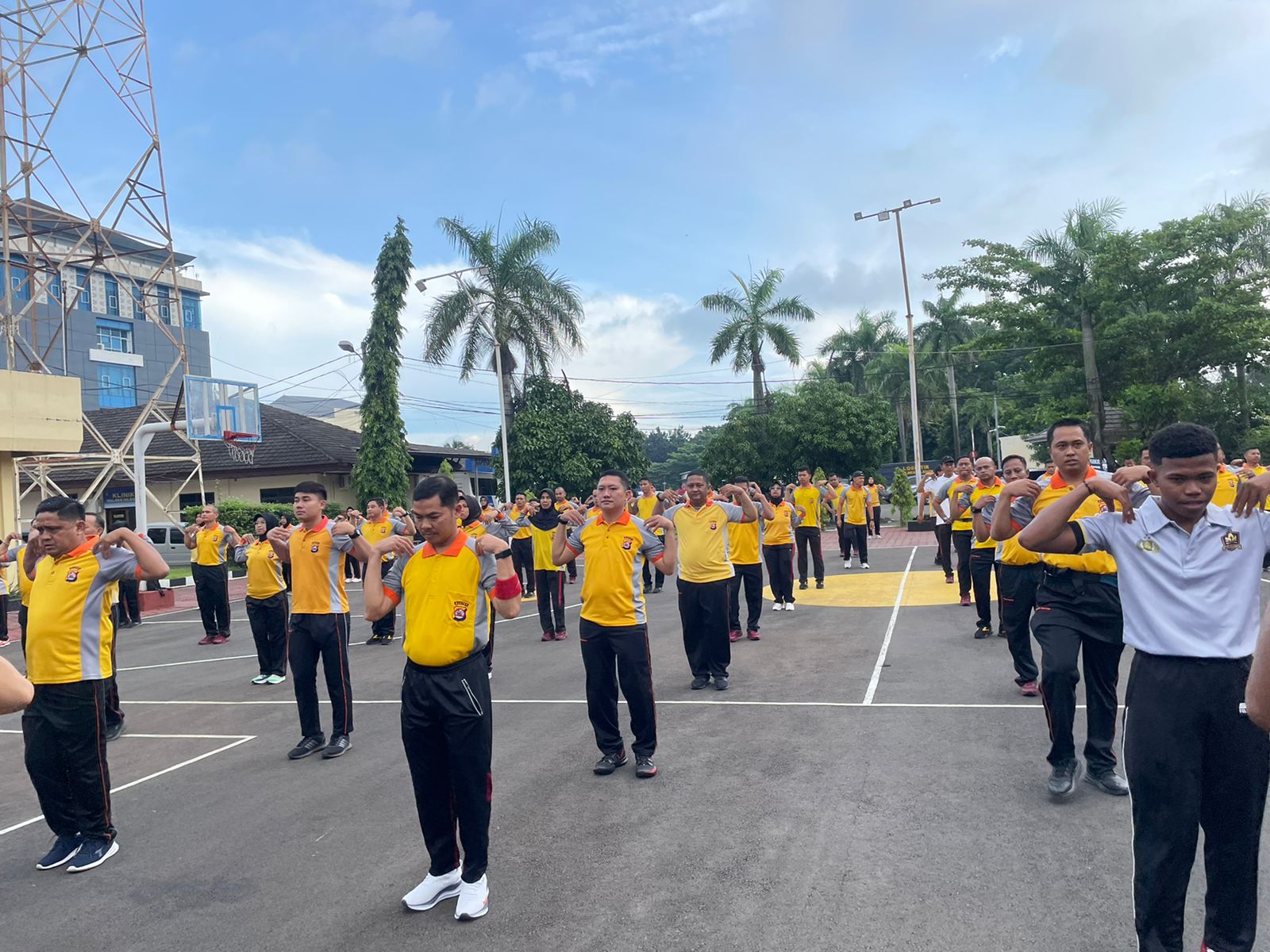 Cilegon,Polres Cilegon Polda Banten Pada Jumat/28/11/2025 Pukul 07.15 Wib, Personil  Polres Cilegon, melaksanakan kegiatan olahraga mandiri di lapangan Polres Cilegon dan melaksanakan senam aerobik di Lapangan polres cilegon.