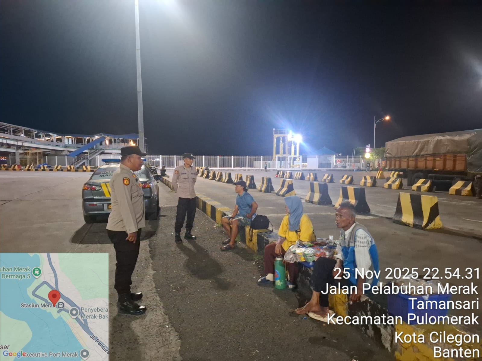 Cilegon - Personil Polsek Kskp Merak Polres Cilegon melaksanakan patroli di kawasan pelabuhan merak memberikan rasa aman dan damai, Rabu (26/11/2025)