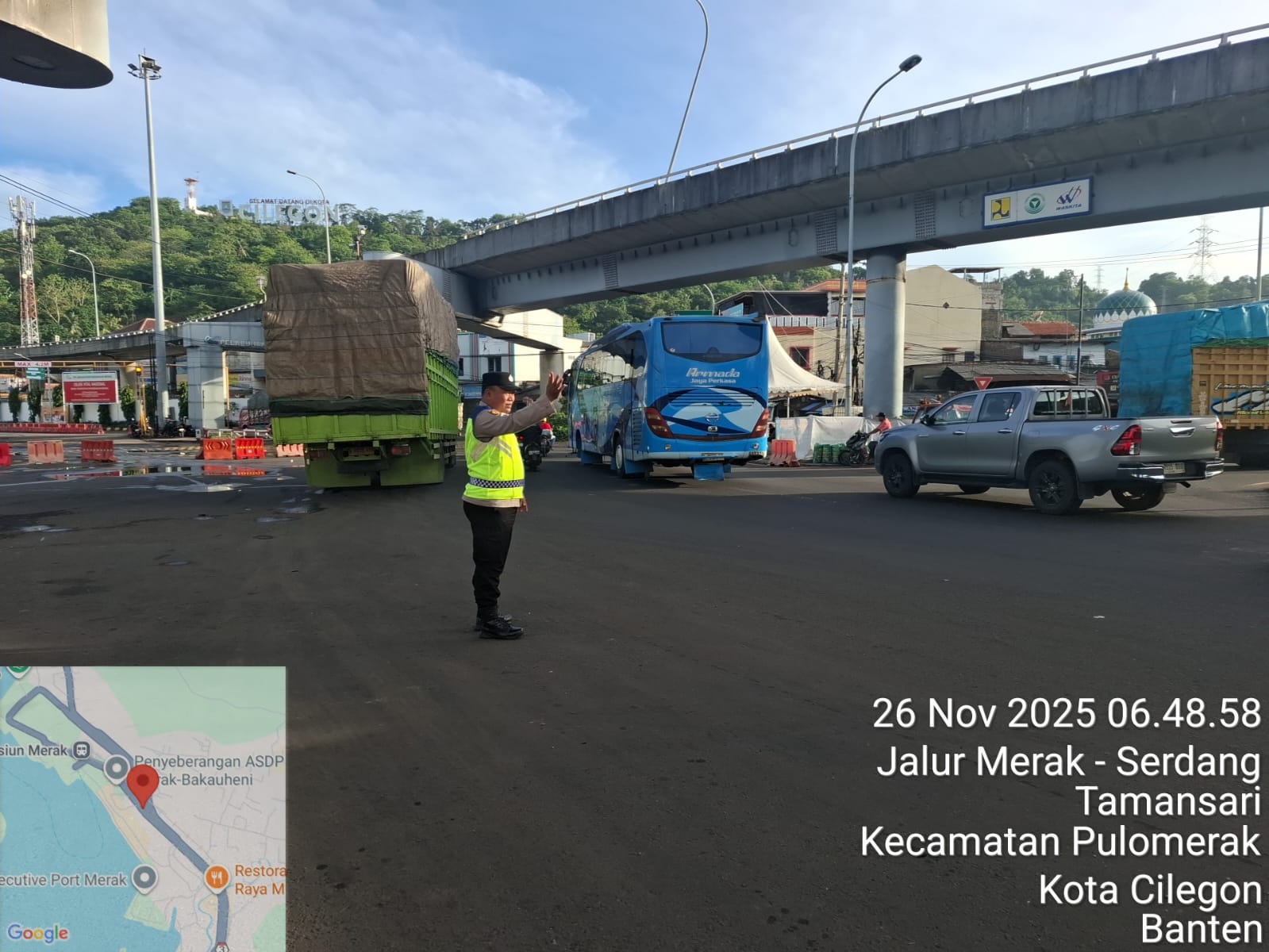 Polsek KSKP Merak Kawal Ketertiban Antrian Kendaraan Menuju Kapal Ferry