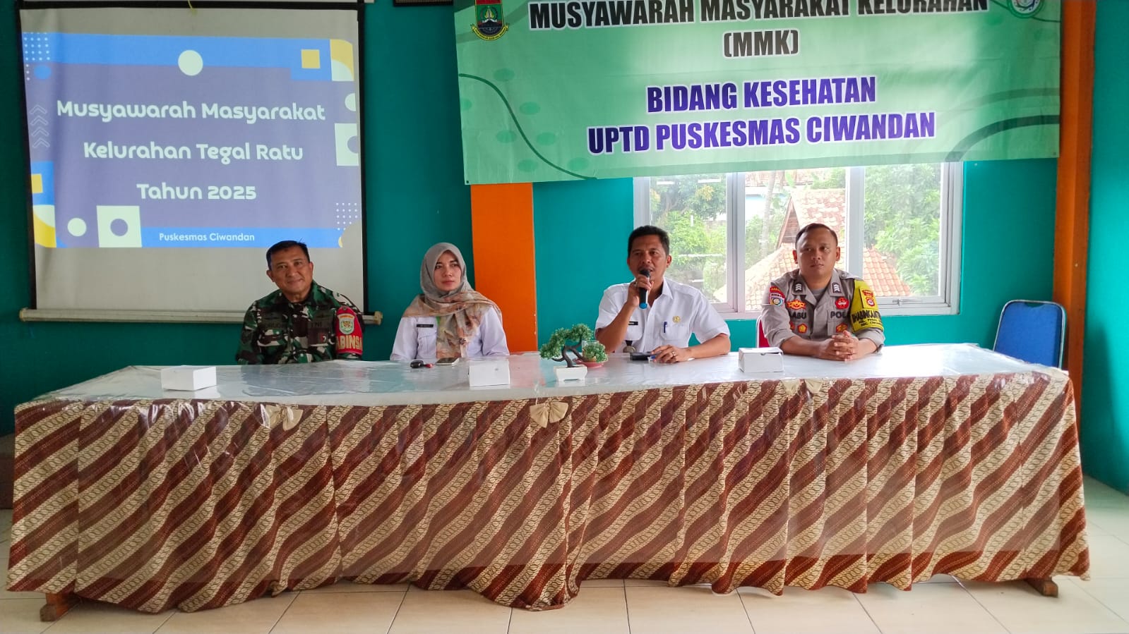 Cilegon - Polsek Ciwandan Polres Cilegon Polda Banten Hadir Dalam Kegiatan (MMK) Musyawarah Masyarakat Kelurahan Bidang Kesehatan UPTD Puskesmas Ciwandan Tahun 2025 Di Aula Kantor Kelurahan Tegalratu Kecamatan Ciwandan, Rabu (26/11/2025).