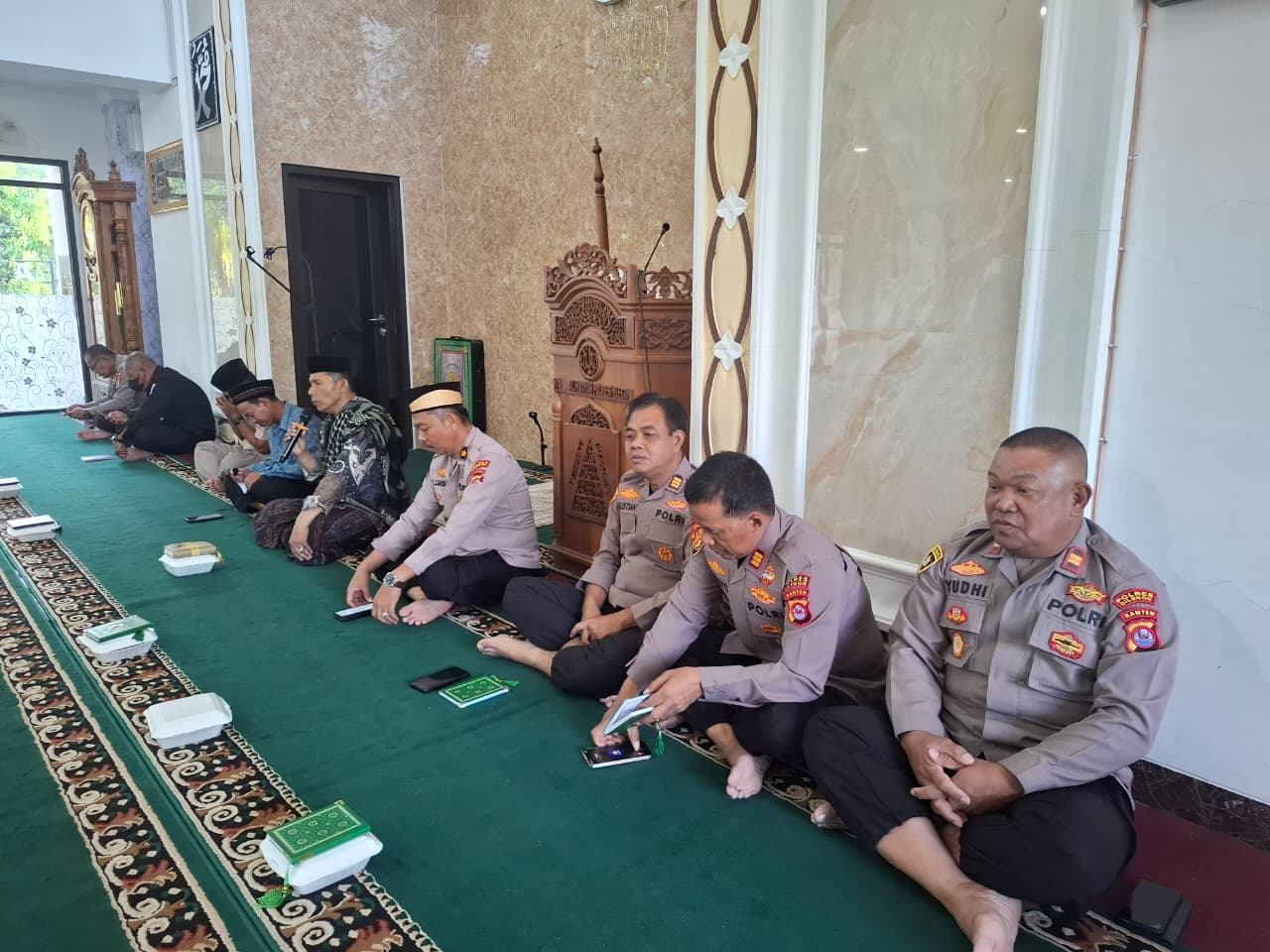 Cilegon,Polres Cilegon Polda Banten Pada Kamis/27/11/2025 Pukul 08.30 Wib, Personil Siwas Polres Cilegon, Kasiwas Polres Cilegon Beserta anggota Mengikuti kegiatan Pengajian Rutin setiap Hari kamis yang di laksnakan di masjid al-Hidayah Polres Cilegon.