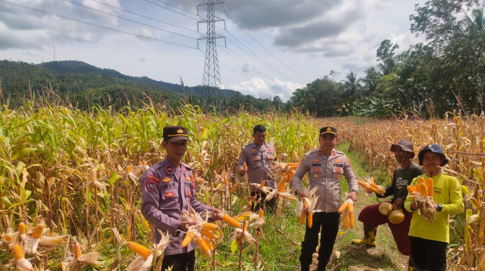 Polsek Anyar Bersama Dengan Poktan Melaksanakan Panen Jagung