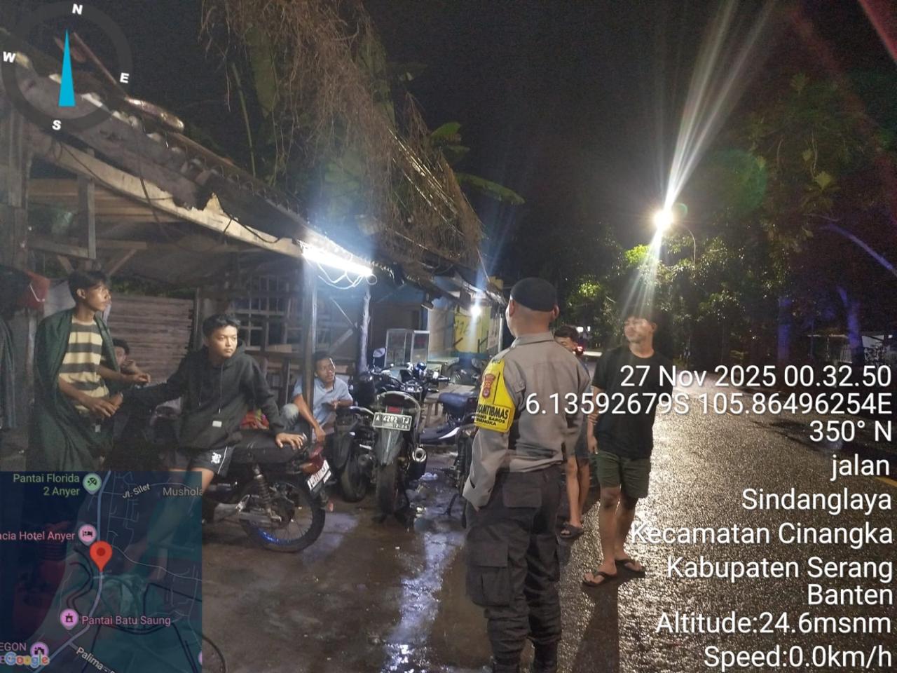 *Polres Cilegon* – Dalam Rangka Pencegahan Kejahatan Jalanan dan Memelihara situasi keamanan dan menjaga serta memberikan rasa aman dan nyaman di masyarakat,Salah satu upaya untuk mewujudkan hal tersebut sebagaimana yang dilakukan oleh Personil Polsek Cinangka Polres Cilegon Polda Banten melaksanakan giat patroli blue light malam hari hingga menjelang pagi, Kamis (27/11/2025).