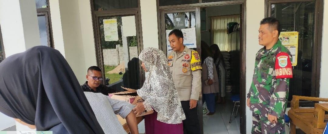 Cilegon - Bhabinkamtibmas Polsek Anyar Polres Cilegon Polda Banten  melaksanakan pengamanan Kegiatan Penyaluran bantuan Sembako dari Pemerintah tahun 2023 oleh Pos Indonesia Kec. Anyar, Kamis (27/11).