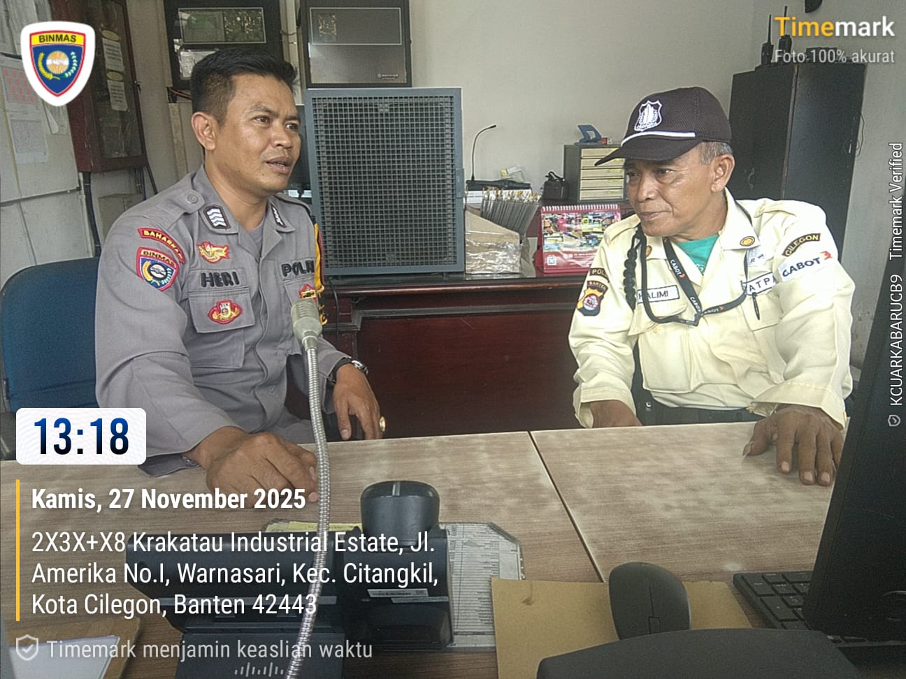 Cilegon - Bhabinkamtibmas Polsek Ciwandan Polres Cilegon Polda Banten Bangun Kemitraan Kamtibmas Dan Datangi Petugas security Meminta Agar Dapat Membantu Tugas-tugas Polri Dalam Menjaga Harkamtibmas,Kamis (27/11/2025).