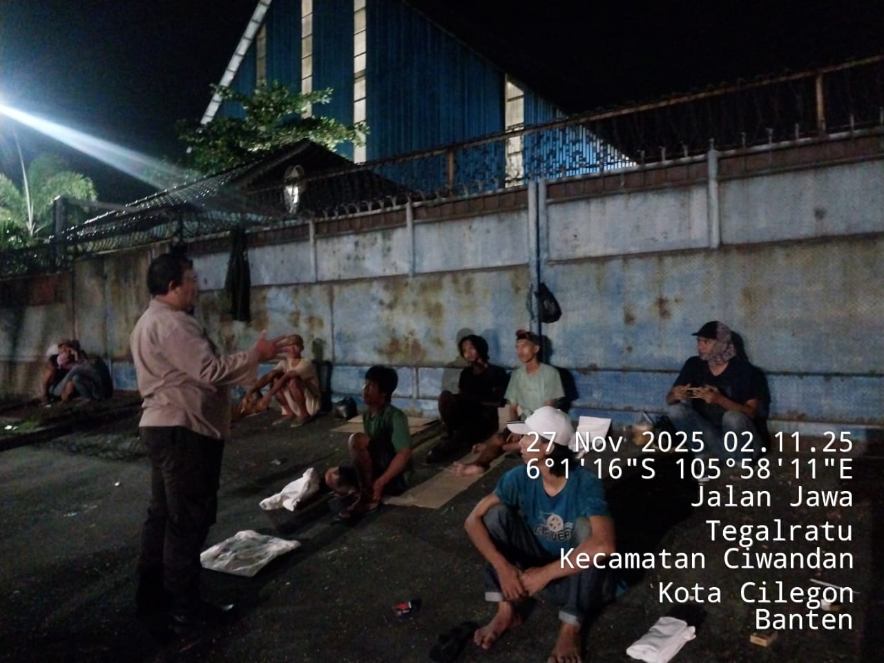 Cilegon - Personil Polsek Ciwandan Polres Cilegon Polda Banten Dalam Pelaksanaan Kegiatan Patroli dengan menyalakan lampu rotator berwarna biru di Daerah Hukum Polsek Ciwandan Polres Cilegon Polda Banten dari malam hingga dini hari, dalam rangka menciptakan situasi aman dan kondusif, Kamis (27/11/2025).