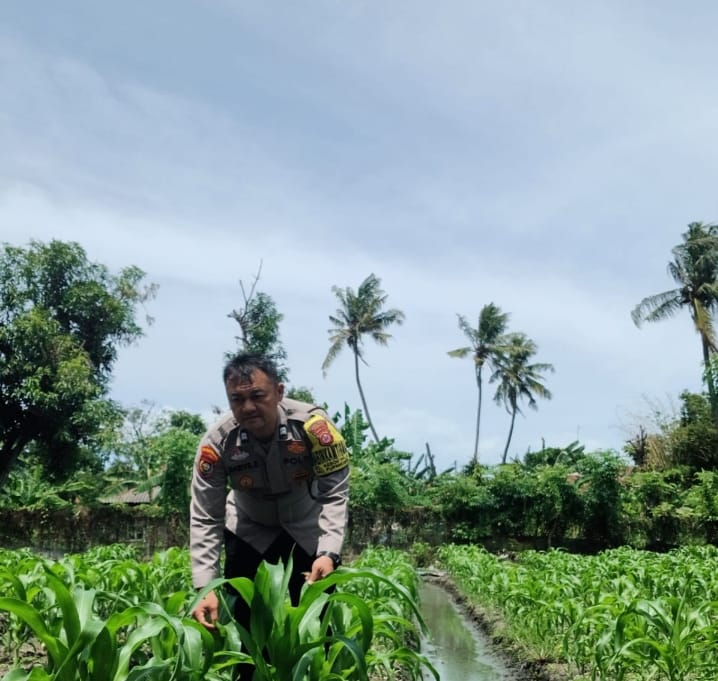 Bhabinkamtibmas Dampingi Pengecekan dan Monitoring Tanaman Jagung di Kebondalem, Cilegon