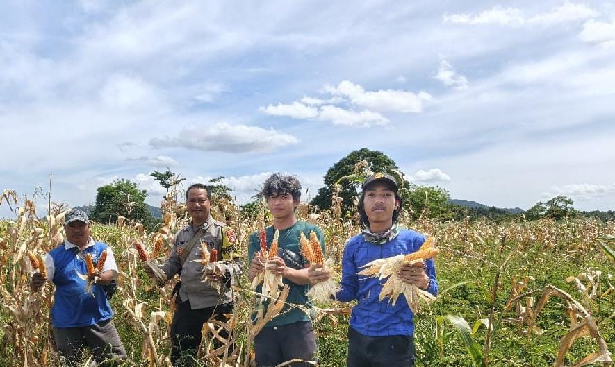 Kegiatan Bersama Poktan Personil Polsek Anyar Melaksanakan Panen Jagung