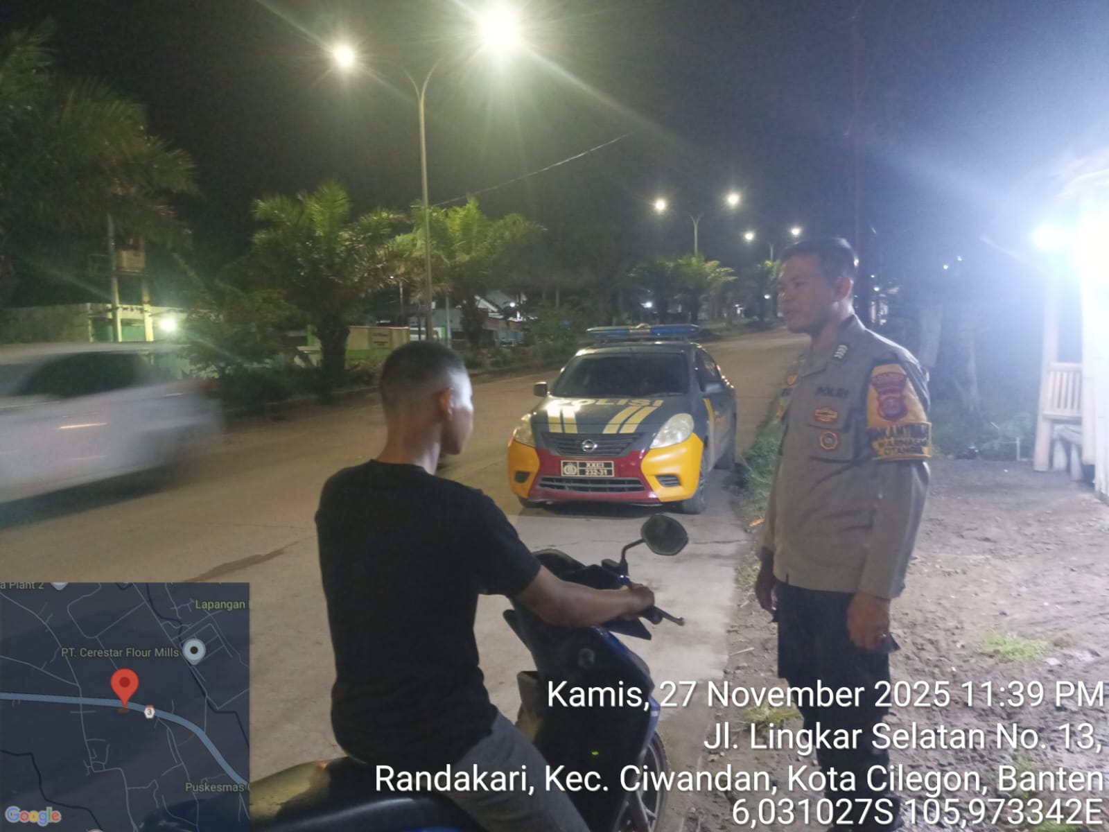 Cilegon - Personil Polsek Ciwandan Polres Cilegon Polda Banten melakukan patroli malam yang bertujuan untuk mengantisipasi adanya aktivitas balap liar dan tawuran kelompok geng motor di daerah hukum Polsek Ciwandan Polres Cilegon Polda Banten, Jum'at (28/11/2025).
