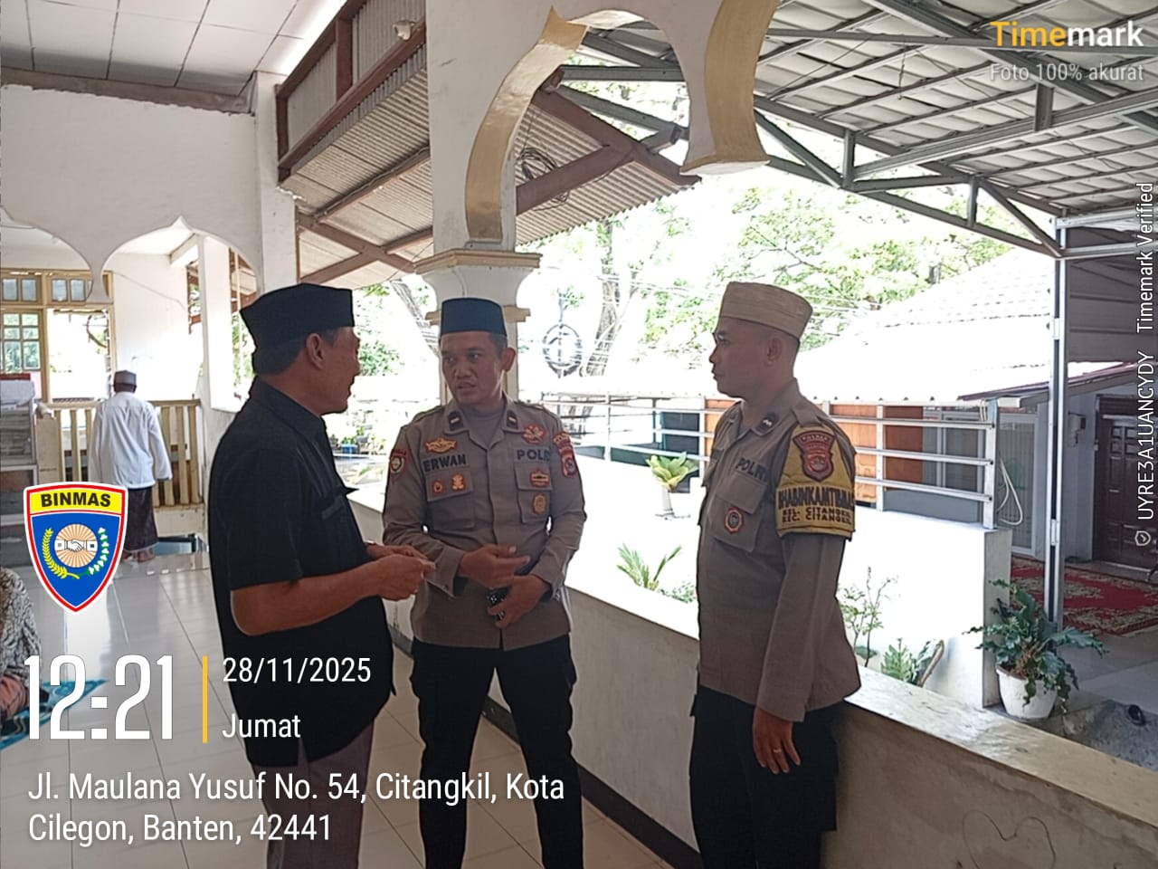 Cilegon - Bhabinkamtibmas Polsek Ciwandan Polres Cilegon Polda Banten Selesai melaksanakan Sholat secara berjama’ah dan Sampaikan Himbauan-himbauan Kamtibmas Kepada Masyarakat Jama'ah Yang ada Dimasjid, Jum'at (28/11/2025).