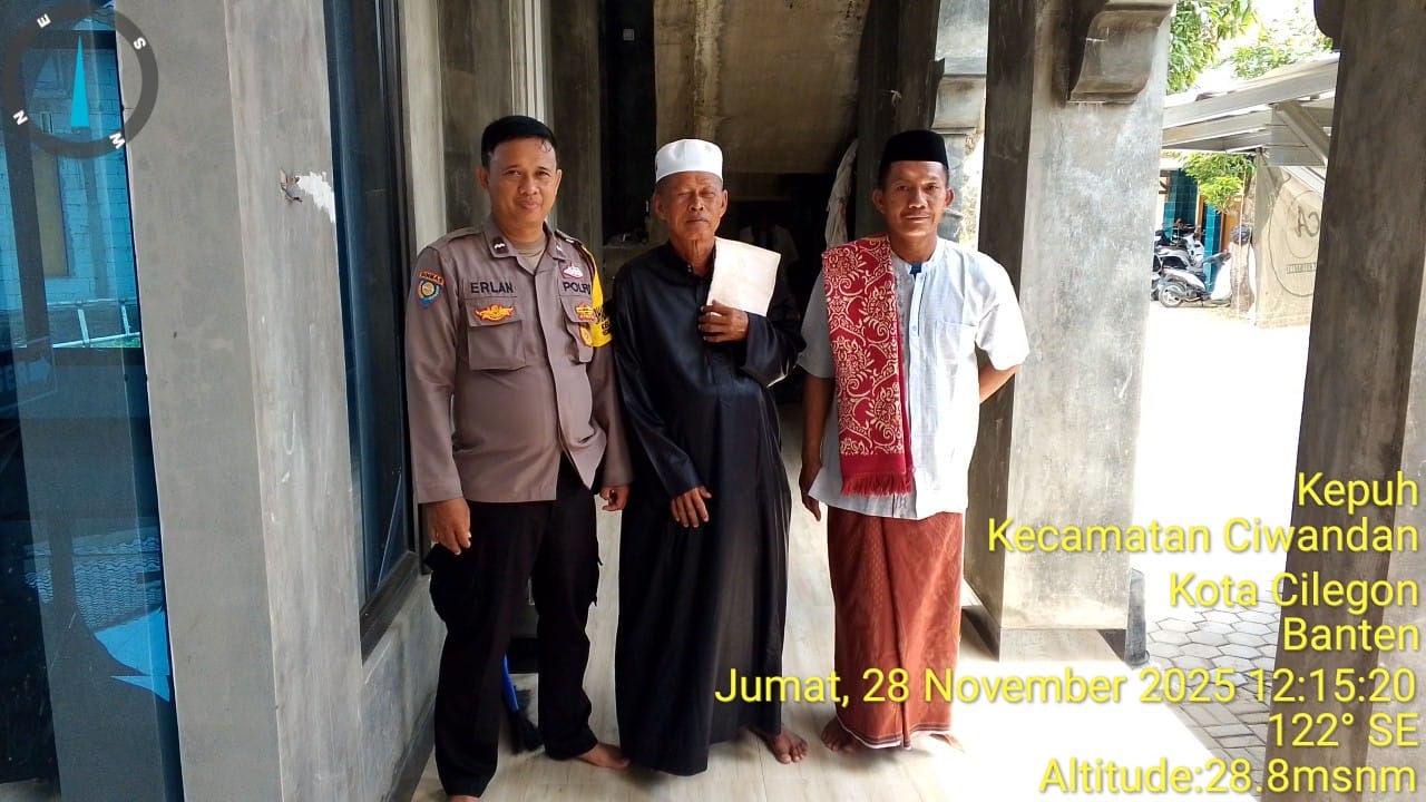 Cilegon - Bhabinkamtibmas Polsek Ciwandan Polres Cilegon Polda Banten Selesai melaksanakan Sholat secara berjama’ah dan Sampaikan Himbauan-himbauan Kamtibmas Kepada Masyarakat Jama'ah Yang ada Dimasjid, Jum'at (28/11/2025).