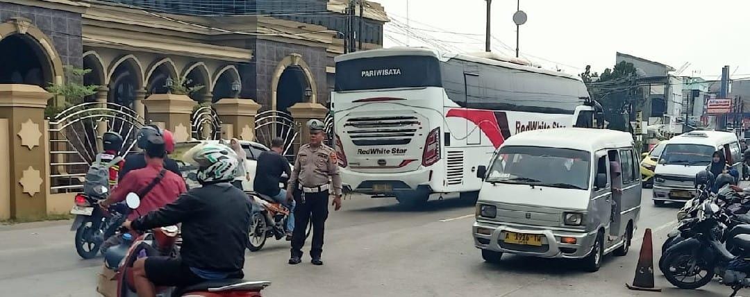 Lancarkan Arus Wisata Anggota Polsek Anyar Lakukan Pengaturan Lalu Lintas di Jalur Anyar - Cinangka