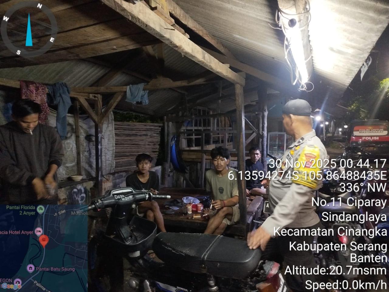 *Polres Cilegon* – Dalam Rangka Pencegahan Kejahatan Jalanan dan Memelihara situasi keamanan dan menjaga serta memberikan rasa aman dan nyaman di masyarakat,Salah satu upaya untuk mewujudkan hal tersebut sebagaimana yang dilakukan oleh Personil Polsek Cinangka Polres Cilegon Polda Banten melaksanakan giat patroli blue light malam hari hingga menjelang pagi, Minggu (30/11/2025).