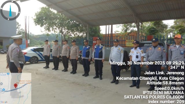 Cilegon - Panit Lantas Polsek Ciwandan IPTU Deni Mulyana Bersama Personil Gabungan Polres Cilegon Polda Banten melaksanakan Kegiatan KRYD Dan Himbauan SK Gubernur Dan monitoring stokfile pasir Didaerah hukum Polsek Ciwandan, Minggu (30/11/2025).