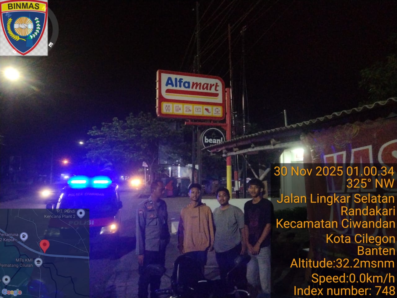 Cilegon - Bhabinkamtibmas Polsek Ciwandan Polres Cilegon Polda Banten Lakukan Sambang Malam guna mengantisipasi aksi kejahatan pada daerah binaan dan memberikan rasa aman dan nyaman kepada warga binaan, Minggu (30/11/2025).