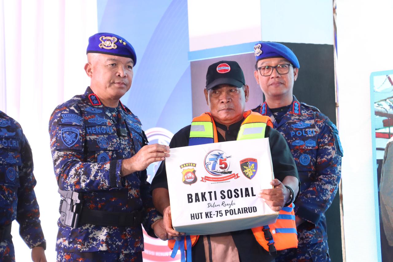 Pengabdian 75 Tahun Polairud, Kapolres Cilegon Hadiri Prosesi Syukuran dan Penyerahan Bantuan
