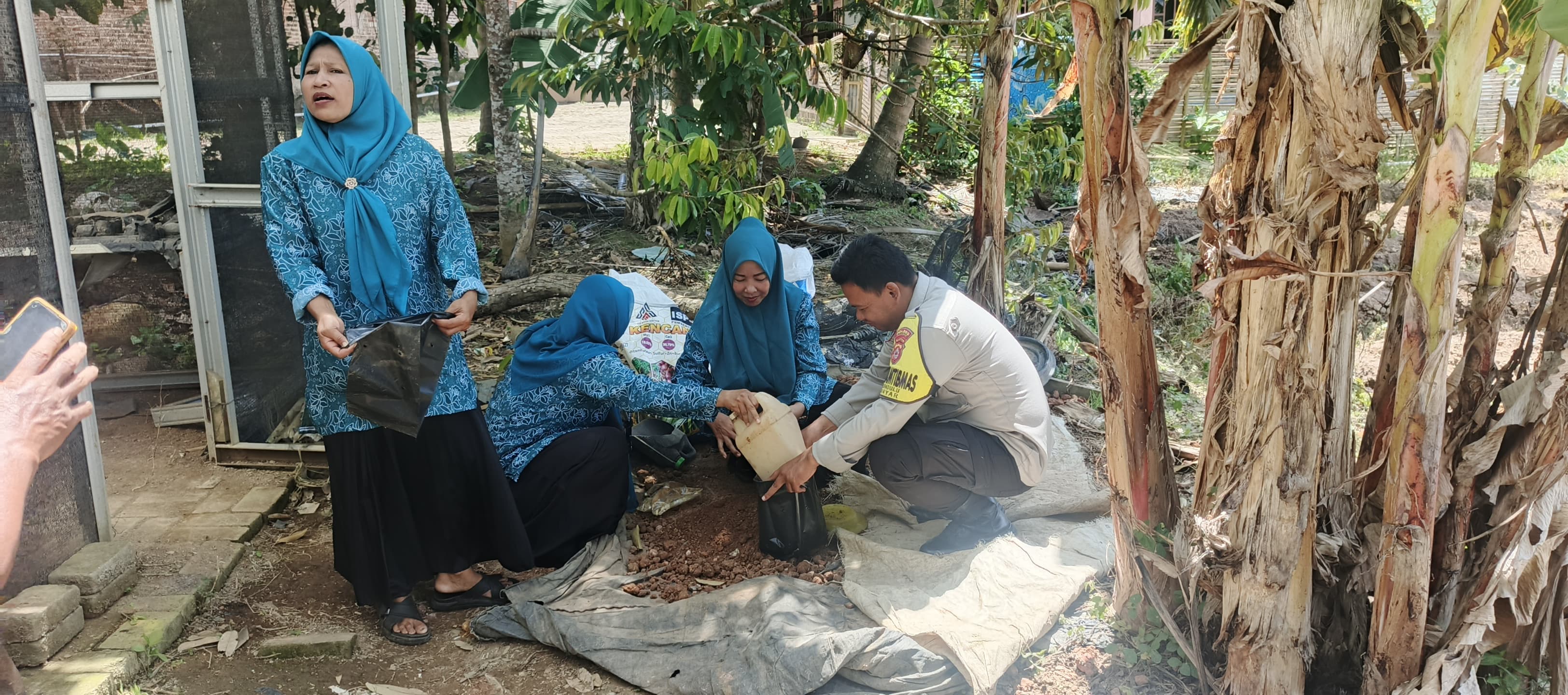 Cilegon - Bhabinkamtibmas Polsek Anyar Polres Cilegon Polda Banten Desa Bandulu menghadiri dan mengikuti kegiatan PKK Desa Bandulu dalam rangka pelaksanaan Program Pekarangan Pangan Lestari (P2L) yang dilaksanakan oleh Kelompok Wanita Tani (KWT) Desa Bandulu. Senin (01/12)