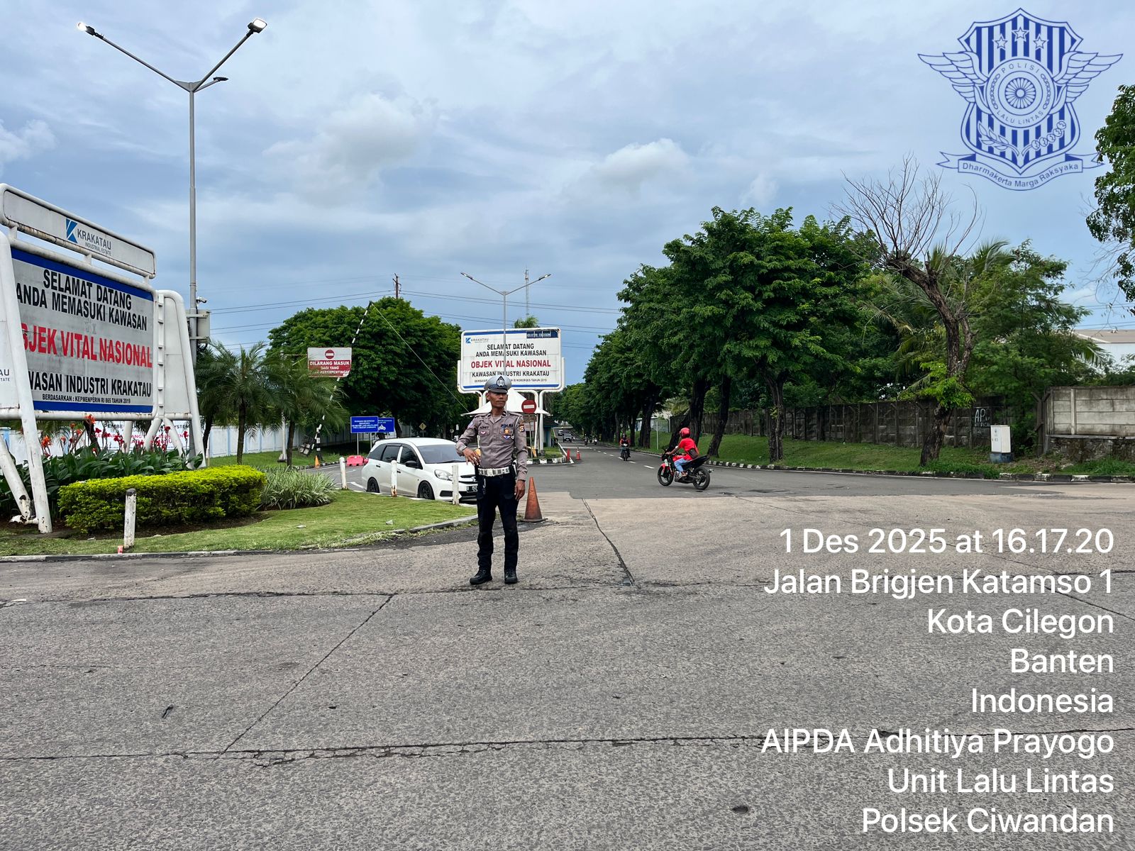 Cilegon - Tingginya mobilitas masyarakat pada jam-jam sibuk, tingkat kerawanan baik itu kemacetan ataupun kecelakaan pasti ada potensi, sehingga untuk mengantisipasi hal tersebut Personil Polsek Ciwandan Polres Cilegon Polda Banten Bhabinkamtibmas melaksanakan Strong Point pada sejumlah lokasi, Senin (01/12/2025).