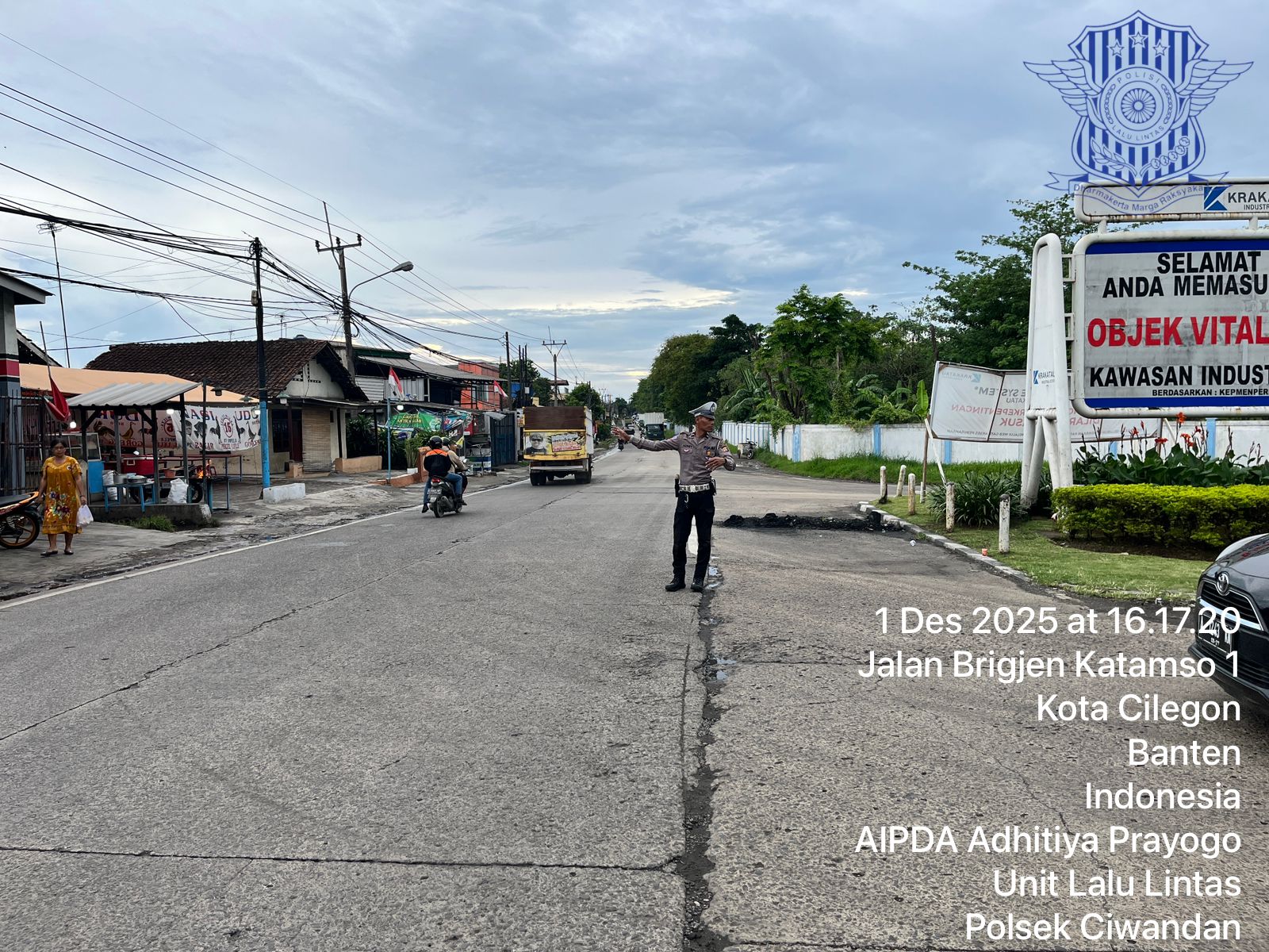 Cilegon - Tingginya mobilitas masyarakat pada jam-jam sibuk, tingkat kerawanan baik itu kemacetan ataupun kecelakaan pasti ada potensi, sehingga untuk mengantisipasi hal tersebut Personil Polsek Ciwandan Polres Cilegon Polda Banten Bhabinkamtibmas melaksanakan Strong Point pada sejumlah lokasi, Senin (01/12/2025).