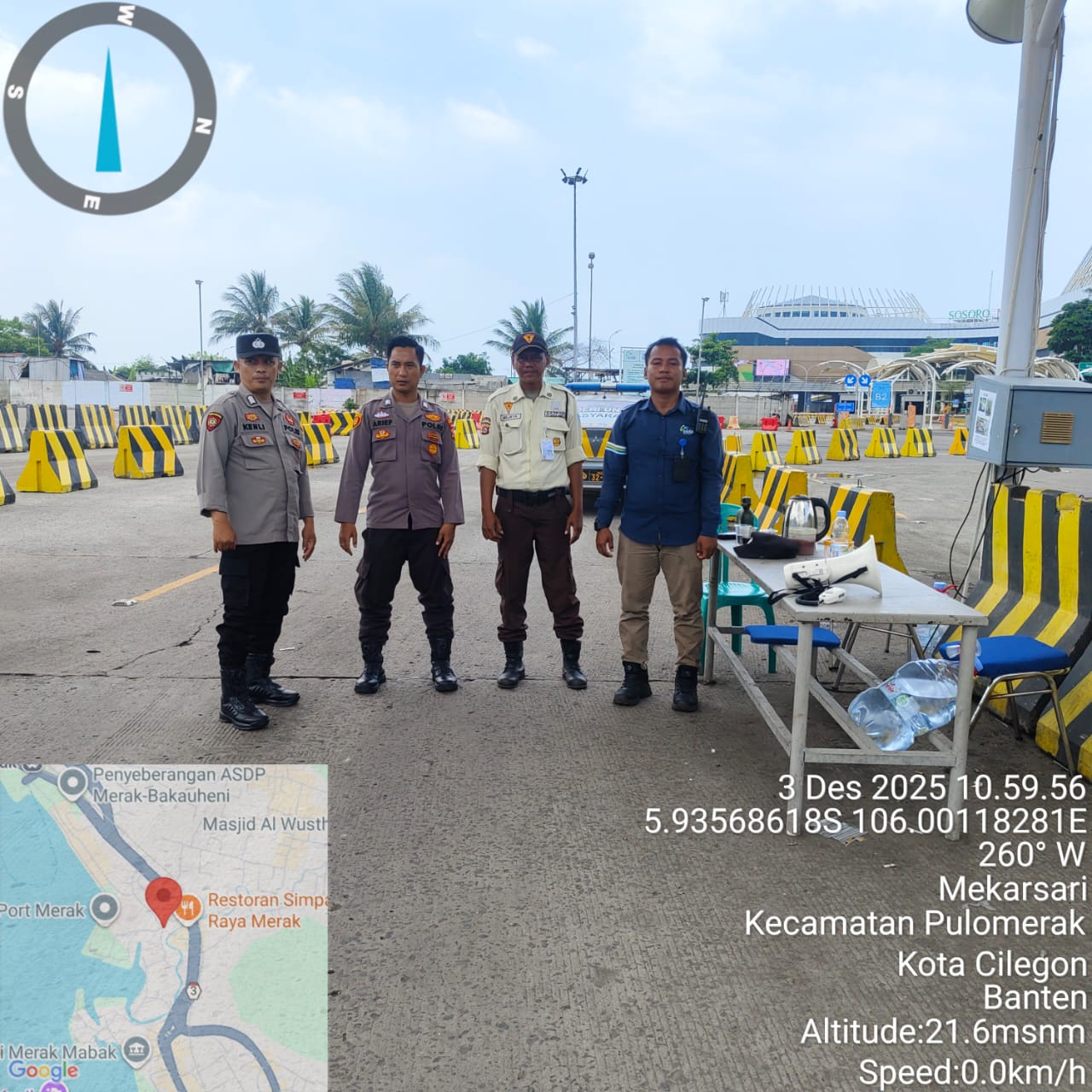 Cilegon - Personel Polsek Kskp Merak Polres Cilegon Polda Banten melaksanakan sambang dan patroli kawasan pelabuhan merak dalam rangka menjaga Harkamtibmas di Kawasan Pelabuhan Merak, Rabu (03/12/2025).