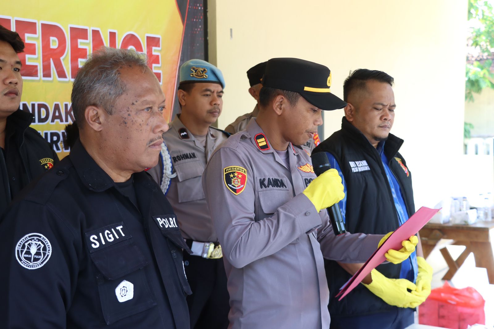 Kapolsek Purwakarta Polres Cilegon Polda Banten IPTU  Sukanda .S.M Pada saat press confrence pengungkapan kasus Pencurian HP yang terjadi di alun alun kota Cilegon dalam kegiatan senam bersama hari guru nasional pada hari Senin tanggal 24 November 2025  Pelapor sedang berada di alun-alun kota Cilegon dalam rangka mengikuti kegiatan hari guru,pada saat kegiatan senam bersama, Pelapor sedang membeli makanan di salah satu stand yang ada di lapangan alun-alun tersebut,  kemudian ada seseorang yang menyenggol tas ransel Pelapor yang sedang Pelapor pakai di bagian belakang badan Pelapor, lalu pada saat Pelapor duduk mau makan di sekitar stand tersebut, pelapor melihat tas ransel Pelapor dalam keadaan resleting terbuka. Ketika Pelapor mengecek isi dari tas ransel Pelapor, Pelapor tidak menemukan handphone yang sebelumnya Pelapor taruh di dalam tas ransel Pelapor tersebut/hilang, lalu Pelapor dan teman Pelapor Sdr Amirudin  mencari keberadaan HP Pelapor yang hilang tersebut, kemudian ada 1 (satu) orang yang Pelapor dan Sdr. Amirudin curigai karena tidak memakai kostum yang seragam dengan peserta yang lainnya, Ketika Pelapor mencurigai  1 (satu) orang tersebut, orang tersebut jalan cepat dan berlari menuju kebelakang kolam air mancur, lalu Sdr. Amirudin melaporkan kepada salah satu anggota polisi yang sedang melakukan pengamanan di sekitar alun-alun tersebut bahwa ada yang dicurigai menjadi pelaku pencurian tersebut. Kemudian ada beberapa anggota polisi yang ikut melakukan pengejaran terhadap terduga pelaku tersebut dan akhirnya terduga pelaku tersebut berhasil diamankan dan di bawa ke pos security, setelah sampai di pos security tas terduga pelaku di buka ternyata benar ada HP Pelapor yang dicuri oleh orang tersebut. Dengan kejadian tersebut pelapor mengalami kerugian sebesar RP 2.600.000 (dua juta enam ratus ribu rupian) dan selanjutnya melaporkan ke Polsek Purwakarta Polres Cilegon Polda Banten