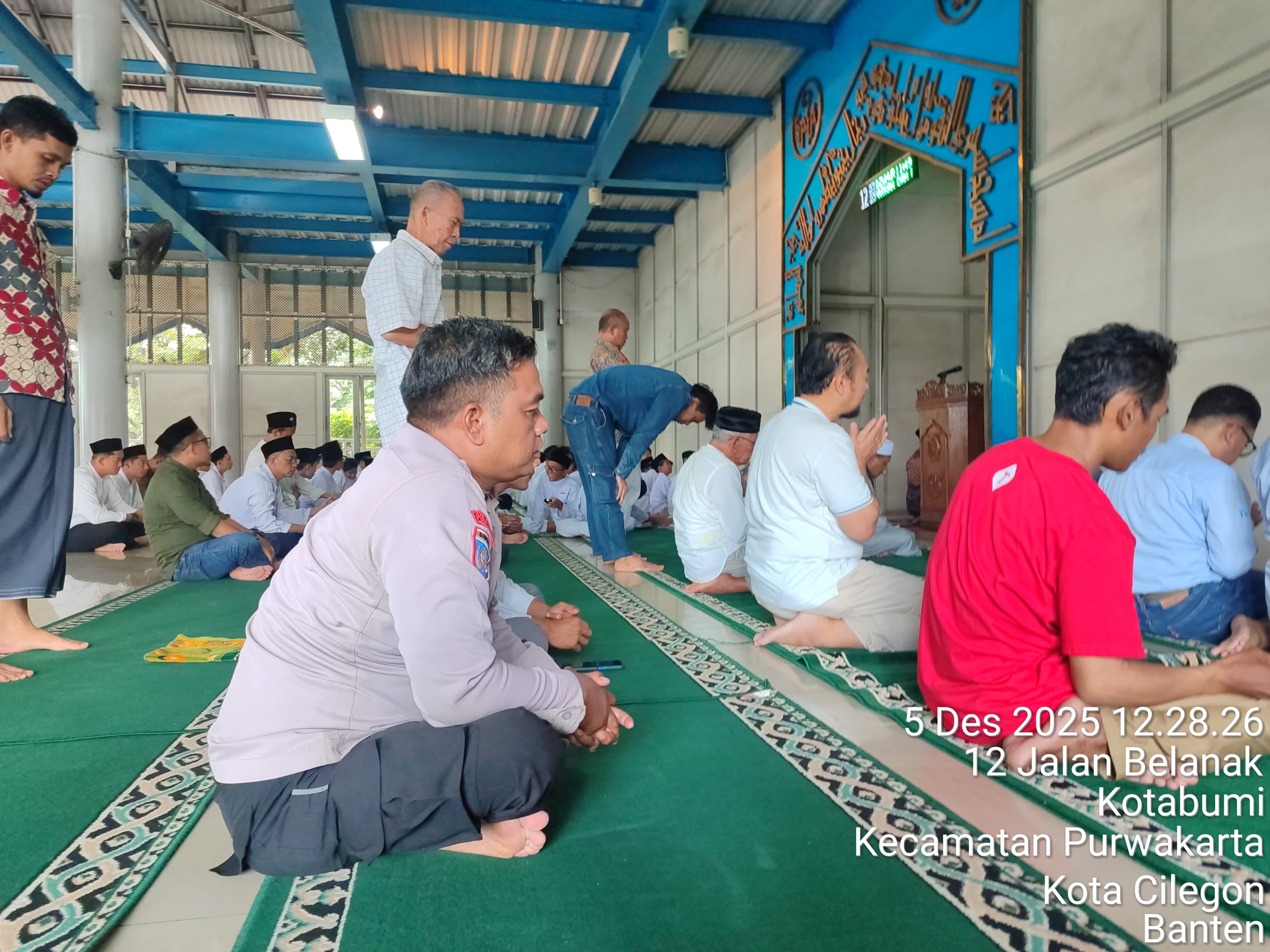 Cilegon - Dalam Rangka Memakmurkan Masjid Dan Sambang,Bhabinkamtibmas Polsek Ciwandan Polres Cilegon Polda Banten Sholat Berjama’ah dan Bersilaturahmi kepada para tokoh Agama sebagai upaya meningkatkan Ukhuwah Islamiyah dalam menjalin silaturahmi dan membangun komunikasi yang baik, Jum’at (05/12/2025).