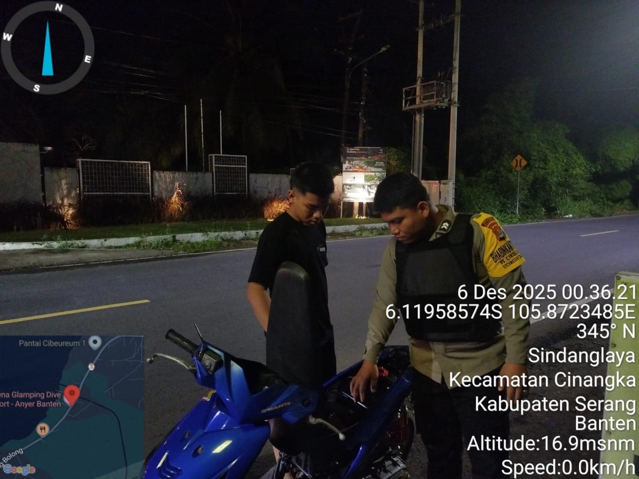 *Polres Cilegon* – Dalam Rangka Pencegahan Kejahatan Jalanan dan Memelihara situasi keamanan dan menjaga serta memberikan rasa aman dan nyaman di masyarakat,Salah satu upaya untuk mewujudkan hal tersebut sebagaimana yang dilakukan oleh Personil Polsek Cinangka Polres Cilegon Polda Banten melaksanakan giat patroli blue light malam hari hingga menjelang pagi, Sabtu (06/12/2025).