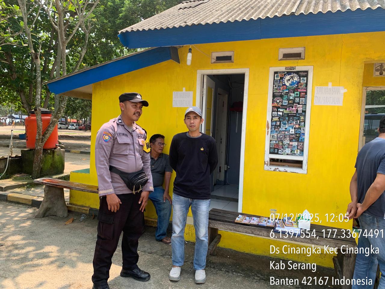 _*POLRES CILEGON*_ | Polsek Cinangka Polres Cilegon Polda Banten melaksanakan kegiatan patroli Serta memberikan Himbauan kepada pengunjung pantai yang berwisata dan Sambang kepada petugas penjaga pantai dan juga antisipasi harkamtibmas di Wilayah Hukum Polsek Cinangka Polres Cilegon Polda Banten, Minggu (07/12/2025).