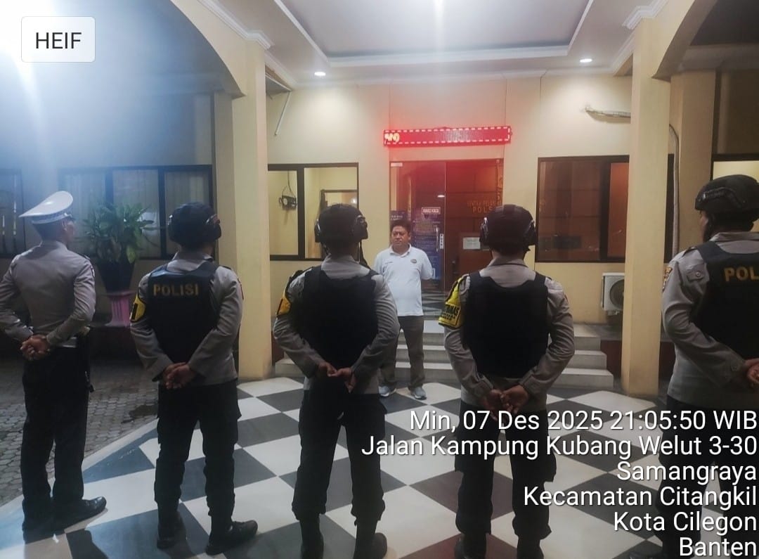 Cilegon - Personil Polsek Ciwandan Polres Cilegon Polda Banten menggelar apel malam Persiapan Patroli yang dipimpin Oleh Pawas Polsek Ciwandan Yang Bertugas Pada Hari Itu, Minggu (07/12/2025).