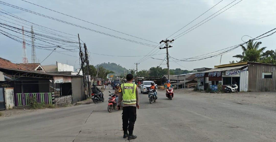 Bripka Gery & Dishub Laksanakan Gatur Lalin sore hari Di Jalan Raya PT Apexindo Bojonegara