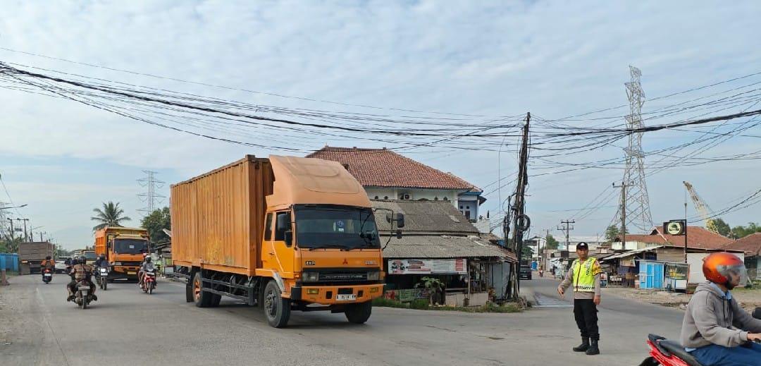 Bripka Gery & Dishub Bantu Lancarkan Lalin Di Jalan Raya PT Apexindo Bojonegara