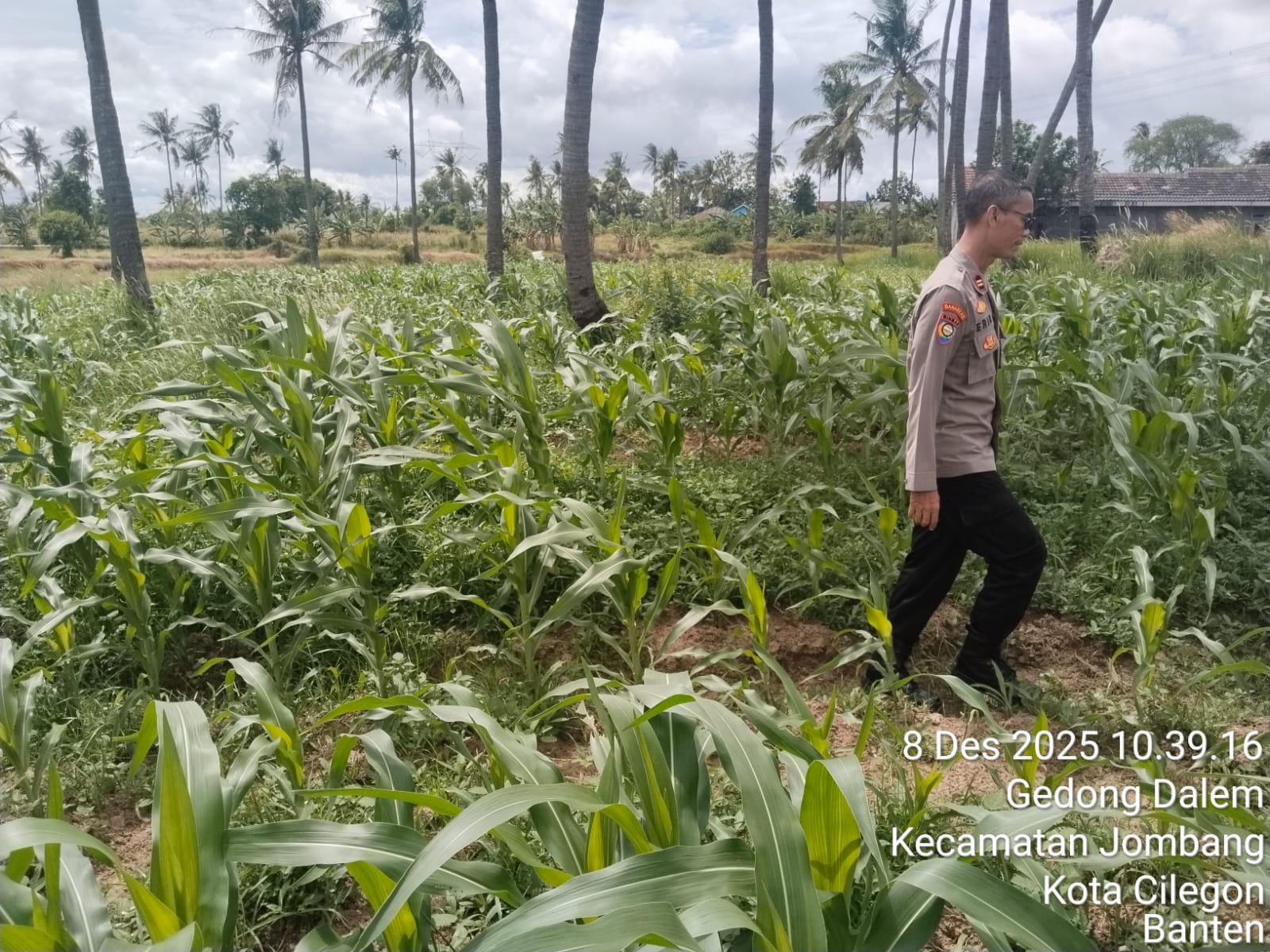 Cilegon - Melaksanakan program pemerintah, penanaman jagung dalam program ketahanan pangan, personil Polsek Kp Merak Polres Cilegon Polda Banten melaksanakan kegiatan peninjauan serta monitoring lokasi yang nantinya akan ditanami bibit jagung unggul di Desa Mangkunegara Kecamatan Bojonegara, Kabupaten Serang, Senin (08/12/2025).