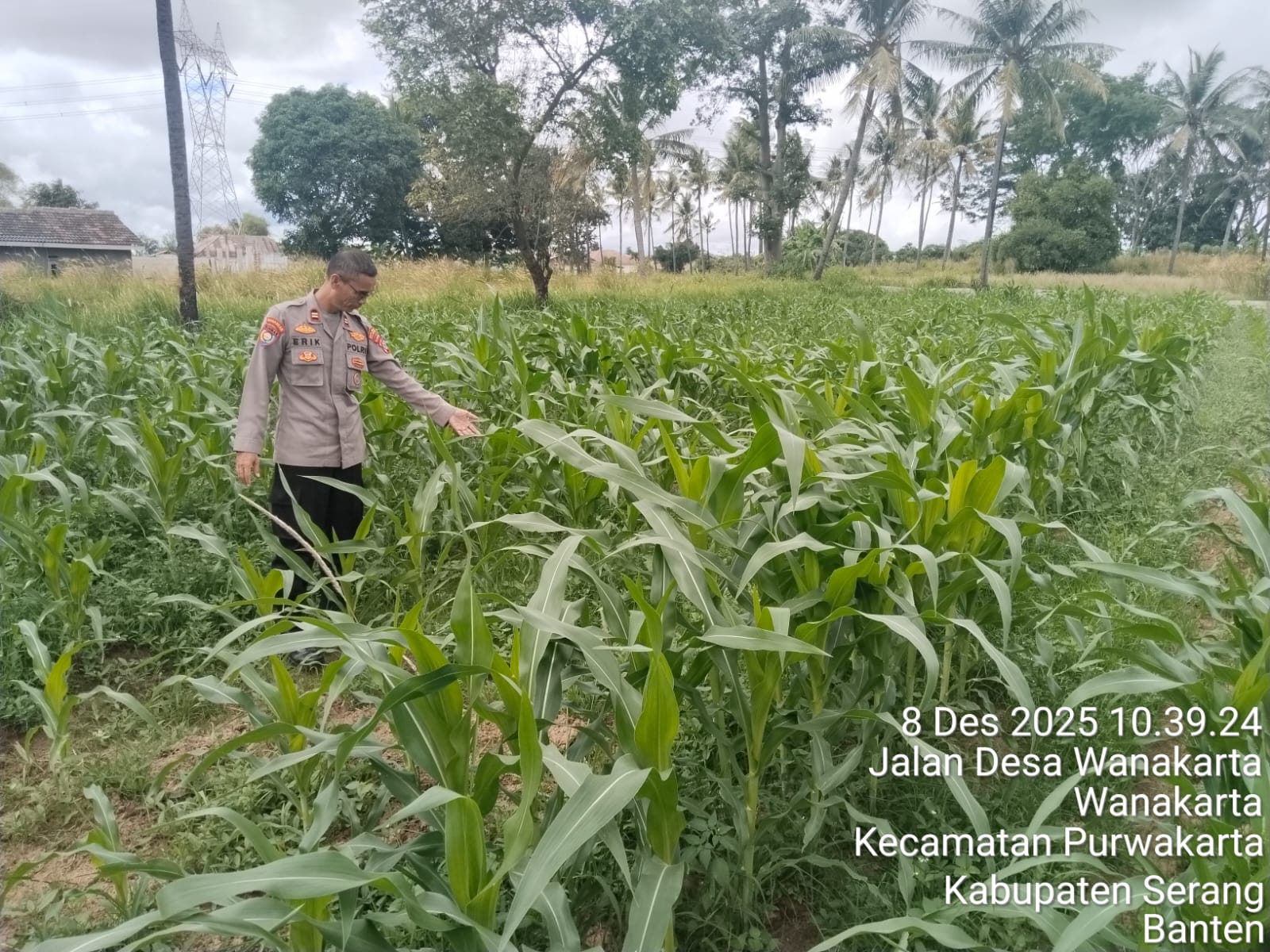 Cilegon - Melaksanakan program pemerintah, penanaman jagung dalam program ketahanan pangan, personil Polsek Kp Merak Polres Cilegon Polda Banten melaksanakan kegiatan peninjauan serta monitoring lokasi yang nantinya akan ditanami bibit jagung unggul di Desa Mangkunegara Kecamatan Bojonegara, Kabupaten Serang, Senin (08/12/2025).