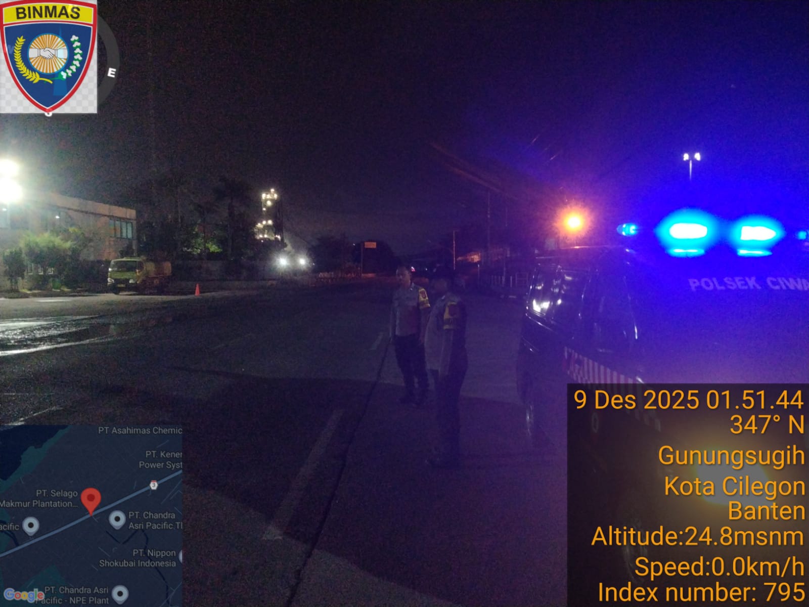 Cilegon - Polres Cilegon melalui Polsek Ciwandan melaksanakan kegiatan Blue Light Patrol. Kegiatan ini bertujuan untuk mengantisipasi gangguan kamtibmas, premanisme, C3 (curat, curas, dan curanmor), balap liar, gang motor, dan perkelahian remaja didaerah hukum Polsek Ciwandan, Selasa (09/12/2025).