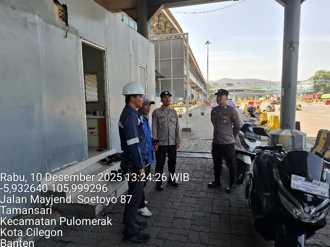 Cilegon - Personel Polsek Kskp Merak Polres Cilegon Polda Banten melaksanakan sambang dan patroli kawasan pelabuhan merak dalam rangka menjaga Harkamtibmas di Kawasan Pelabuhan Merak, Rabu (10/12/2025).