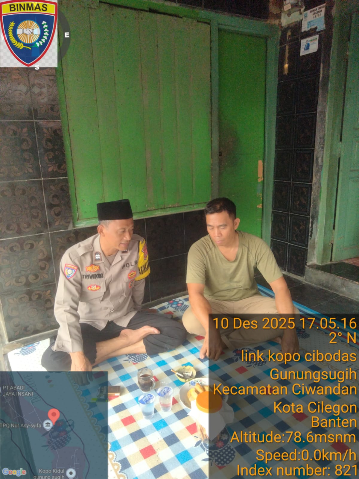 Cilegon - Kali ini Bhabinkamtibmas Polsek Ciwandan Polres Cilegon Polda Banten Bersilaturahmi Anjangsana warga binaanya Dan Tokoh Masyarakat merupakan salah satu tugas rutin yakni dengan melaksanakan Anjangsana/kunjungan kepada Tokoh masyarakat  untuk menjalin silaturahmi yang lebih erat dan menyampaikan pesan-pesan kamtibmas serta mencari informasi yang berkembang di masyarakat agar tercipta situasi kamtibmas yang aman dan kondusif, Rabu (10/12/2025).