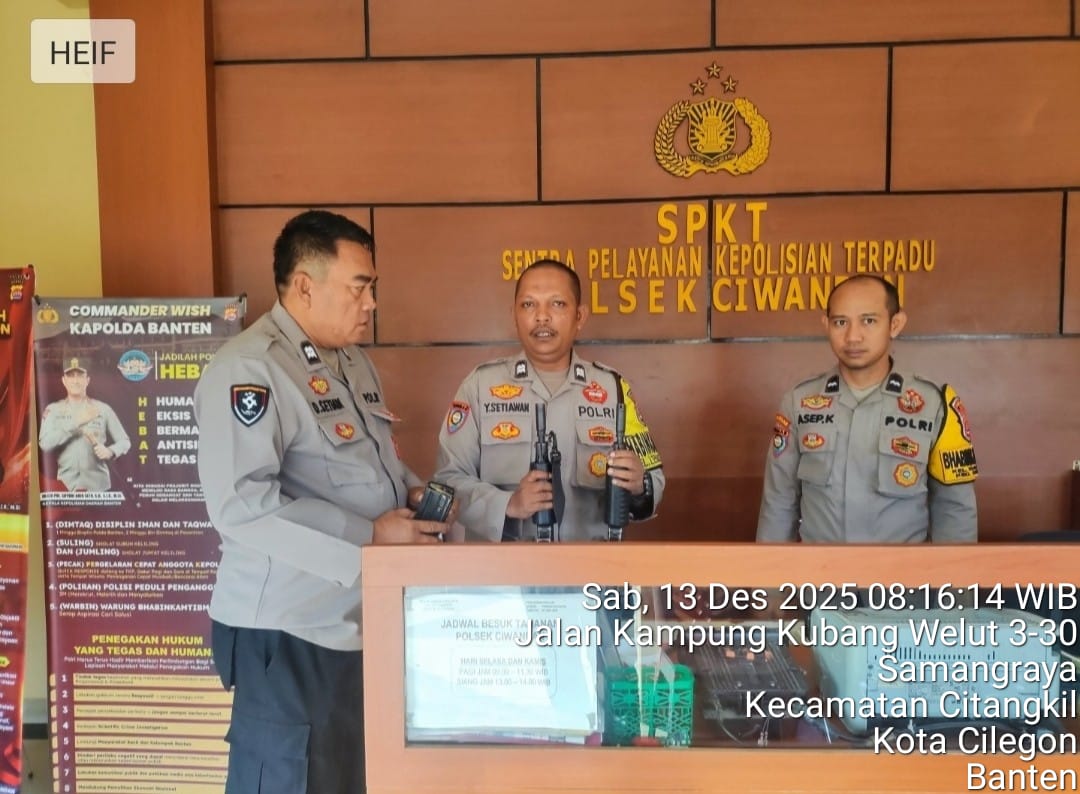 Cilegon - Sebelum melaksanakan tugas jaga Mako Personil Polsek Ciwandan Polres Cilegon Polda Banten Melaksanakan Serah Terima Tugas jaga dan Mengecek Kelengkapan barang-barang Inventaris, Sabtu (13/12/2025).