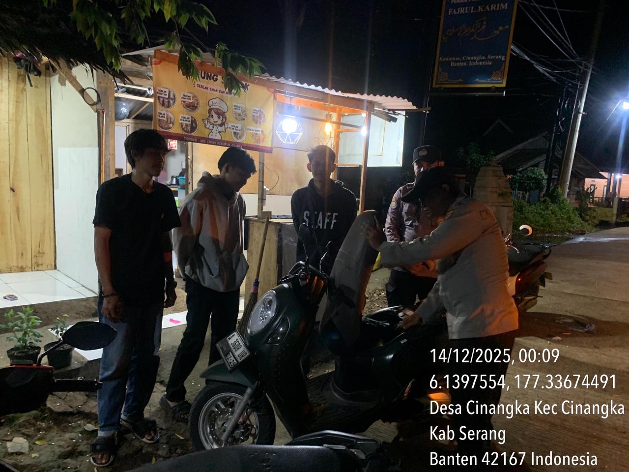 *Polres Cilegon* – Dalam Rangka Pencegahan Kejahatan Jalanan dan Memelihara situasi keamanan dan menjaga serta memberikan rasa aman dan nyaman di masyarakat,Salah satu upaya untuk mewujudkan hal tersebut sebagaimana yang dilakukan oleh Personil Polsek Cinangka Polres Cilegon Polda Banten melaksanakan giat patroli blue light malam hari hingga menjelang pagi, Minggu (14/12/2025).