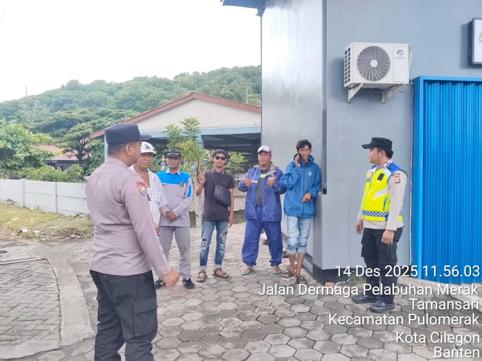 Cilegon - Personel Polsek Kskp Merak Polres Cilegon Polda Banten melaksanakan sambang dan patroli kawasan pelabuhan merak dalam rangka menjaga Harkamtibmas di Kawasan Pelabuhan Merak, Minggu (14/12/2025).