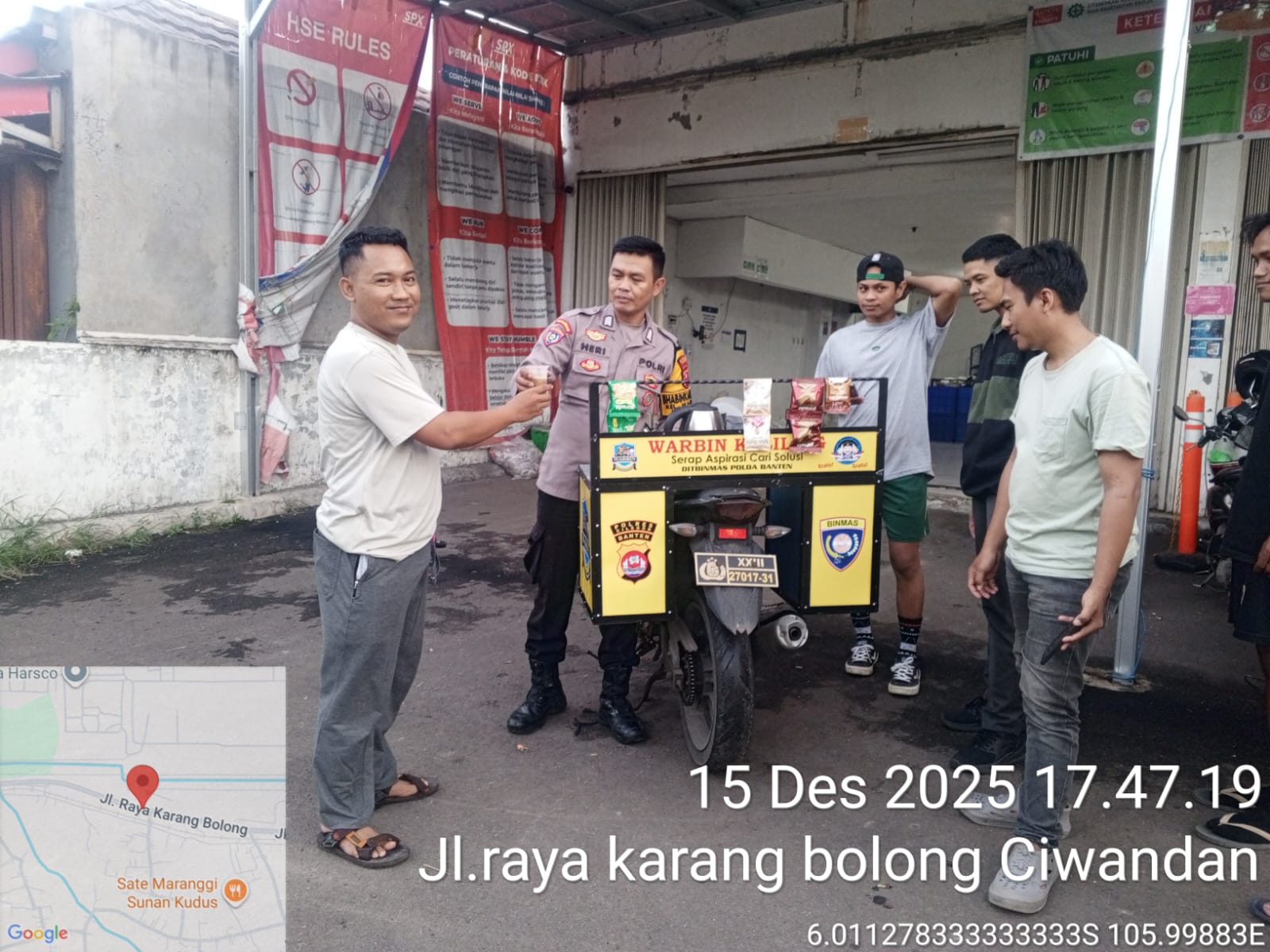 Cilegon - Bhabinkamtibmas Polsek Ciwandan Polres Cilegon Polda Banten melaksanakan kegiatan WARBIN (warung Blnhabinkamtibmas) di Lingkungan Binaan, Senin (15/12/2025).