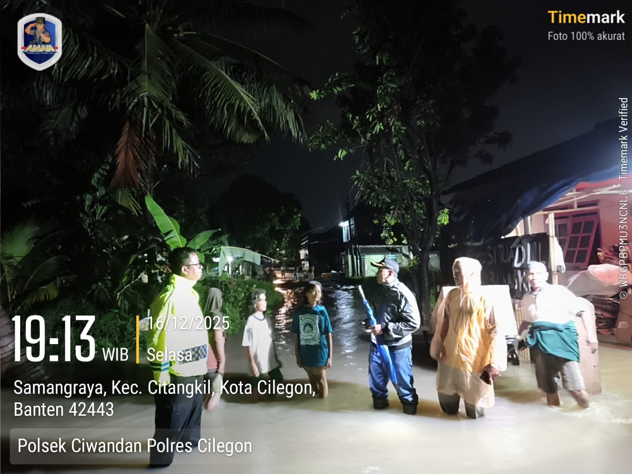 Cilegon - Bhabinkamtibmas Kelurahan Samangraya Polsek Ciwandan Polres Cilegon BRIPKA Marisco bersama Ketua Rt 01/02 dan Ketua Rw 02 Kel. Samangraya, melaksanakan monitoring wilayah pasca hujan lebat di Link. Warung Juet Rt 01/02 Kel. Samangraya Kec. Citangkil Kota Cilegon, Selasa (16/12/2025).