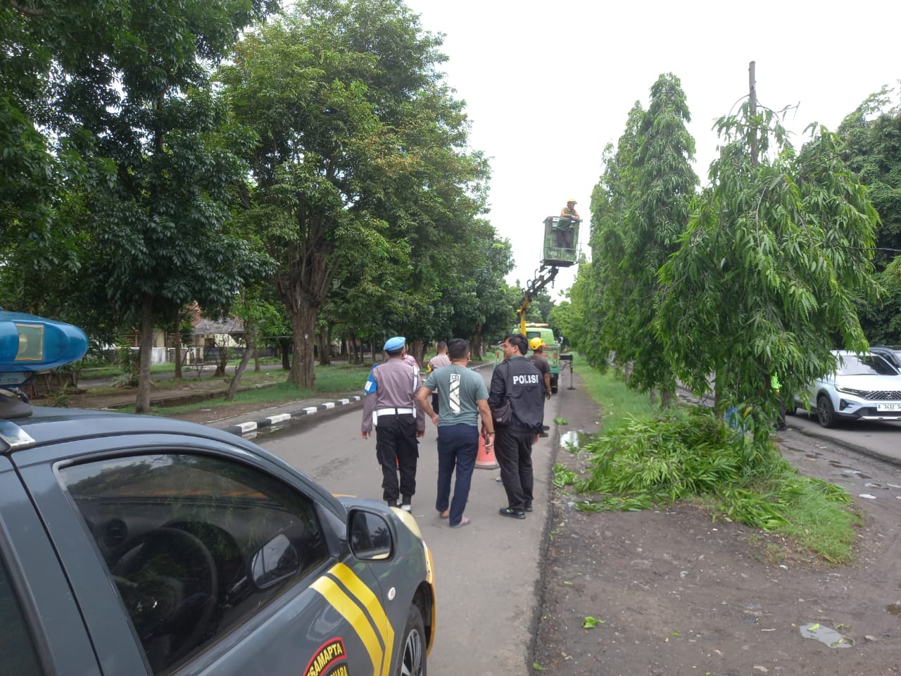 Personil Piket Polsek Purwakarta Monitoring Wilayah Antisipasi Pohon Tumbang dan Banjir di wilayah