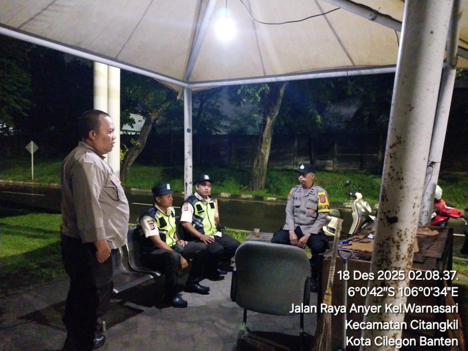 Cilegon - Demi Menjaga keamanan Daerah Hukum Polsek Ciwandan agar tetap kondusif, Personil Polsek Ciwandan Polres Cilegon Polda Banten Melakukan kegiatan sambang kamtibmas Dan Patroli Bersama Security, Kamis (18/12/2025).